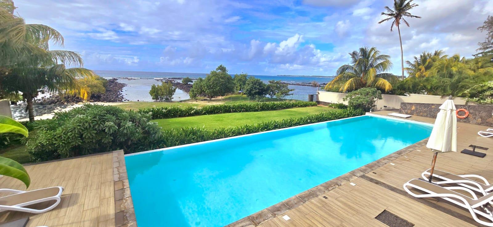 Discover this stunning beachfront penthouse of 210 m², fully furnished and equipped, located in Pointe aux Biches. A true rare gem, it offers breathtaking sea views. This exceptional contemporary apartment seduces with its modern design, refined finishes, and exceptional comfort. It features spacious, bright living areas, harmoniously arranged and tastefully decorated. Ideally located in a peaceful residential area, it is close to all amenities and just a few minutes from La Croisette shopping center in Grand Baie.