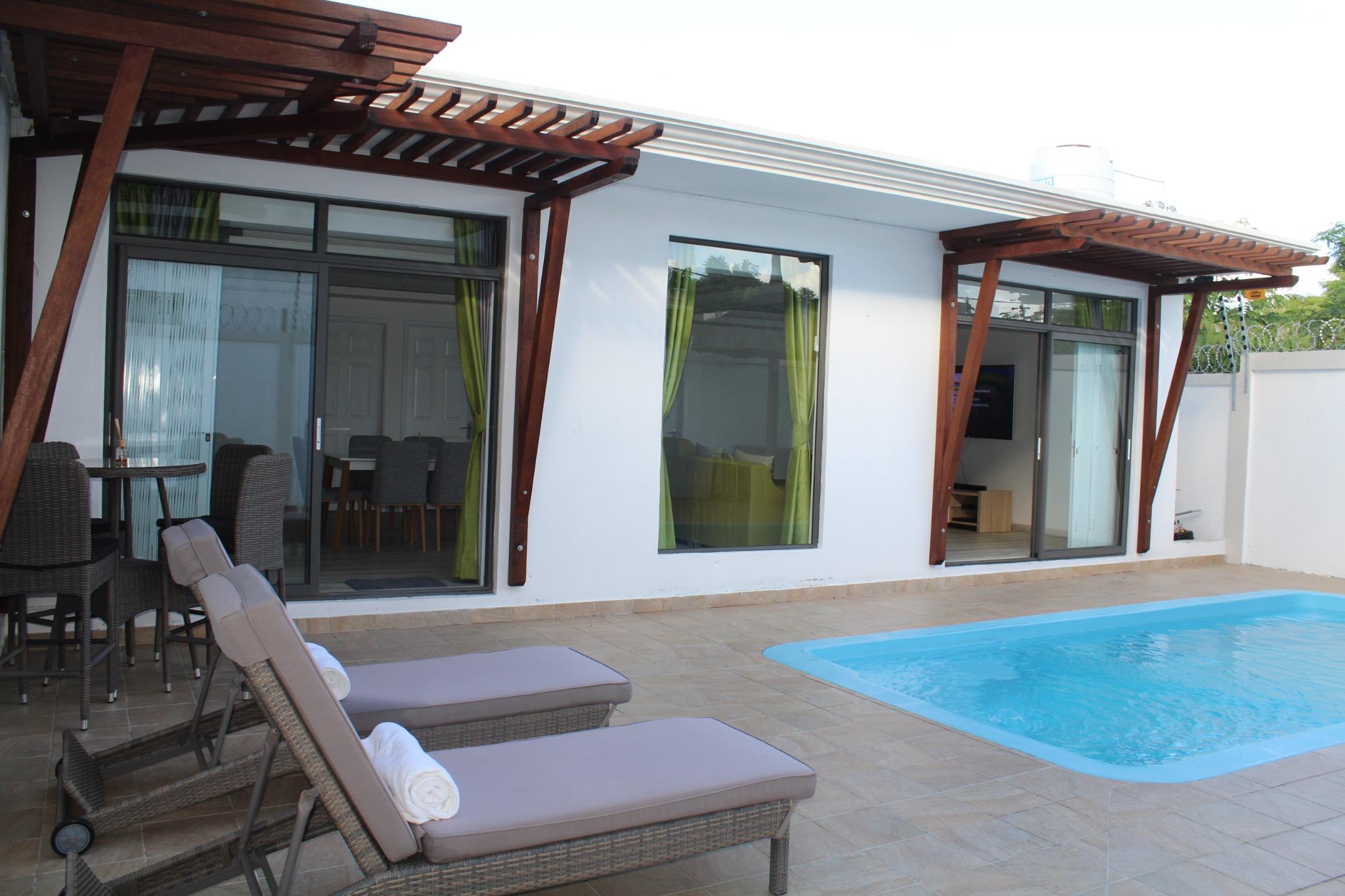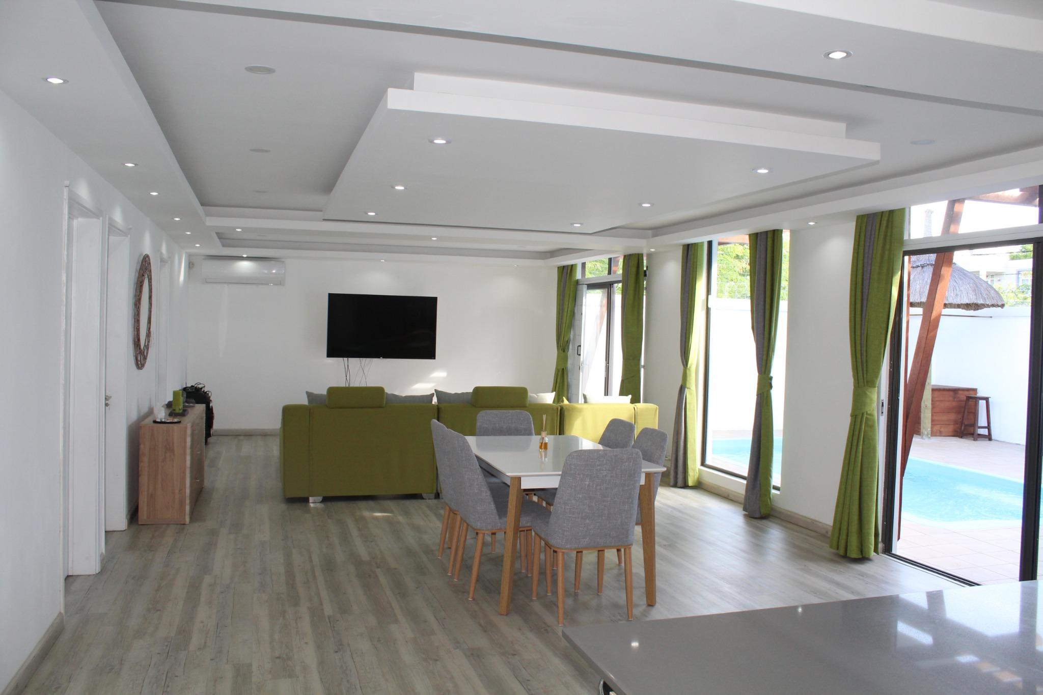TO RENT – Magnificent contemporary single storey house of 146 m2 fully furnished and equipped on a plot of land of 100 toises situated in a residential area in Balaclava.