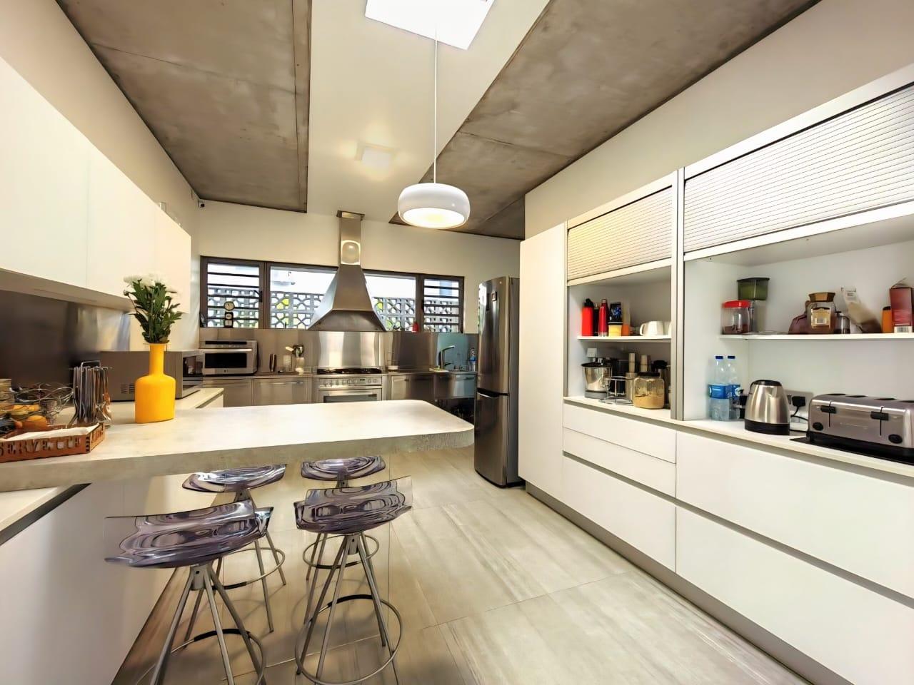Stunning furnished and equipped luxury house of 438 m², located in the chic and very sought after residential area of Floréal. Set on a plot of 1,026 m², this exceptional property seduces with its contemporary architecture, generous volumes and perfect harmony with the surrounding nature. The bright living spaces open onto a green garden, creating an elegant and serene atmosphere, ideal for a high-end living environment. Close to all amenities, including the shopping center of So'Flo, schools and main roads, this villa combines comfort, modernity and prime location.