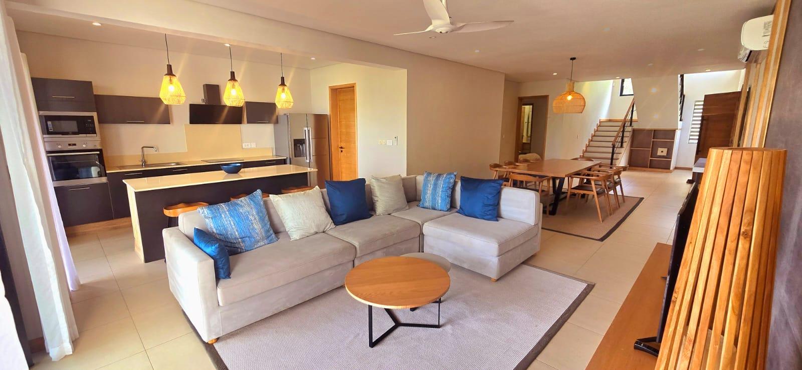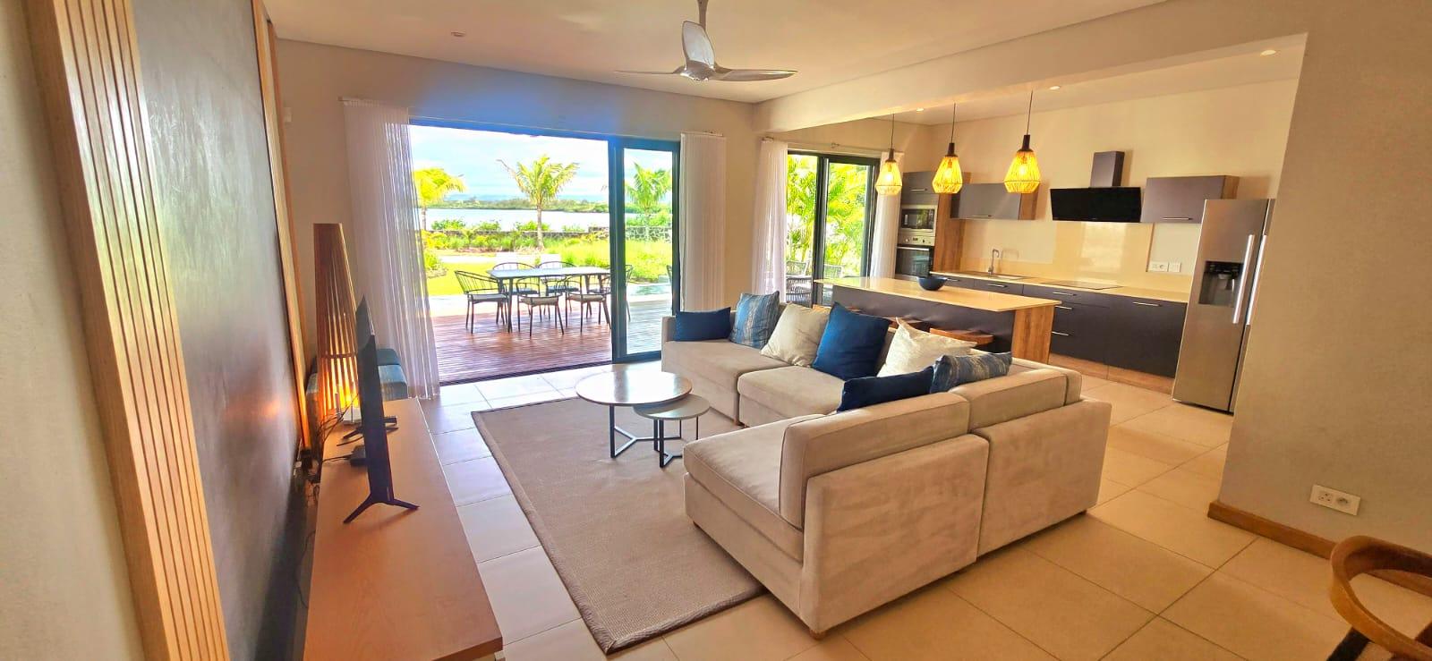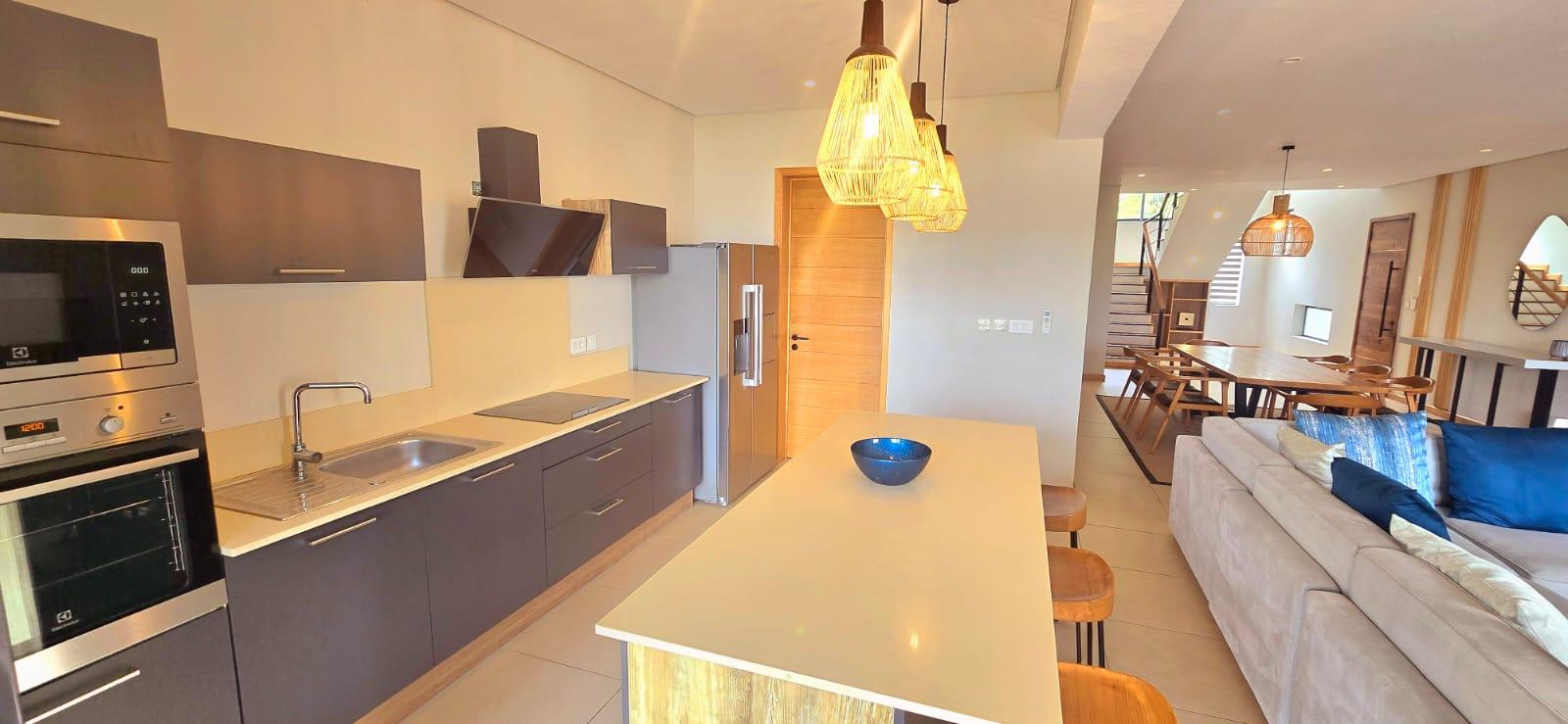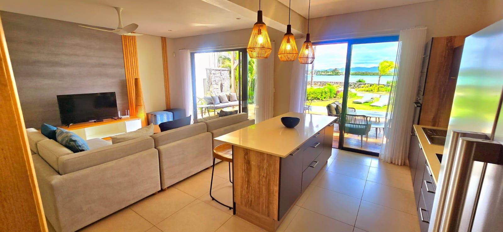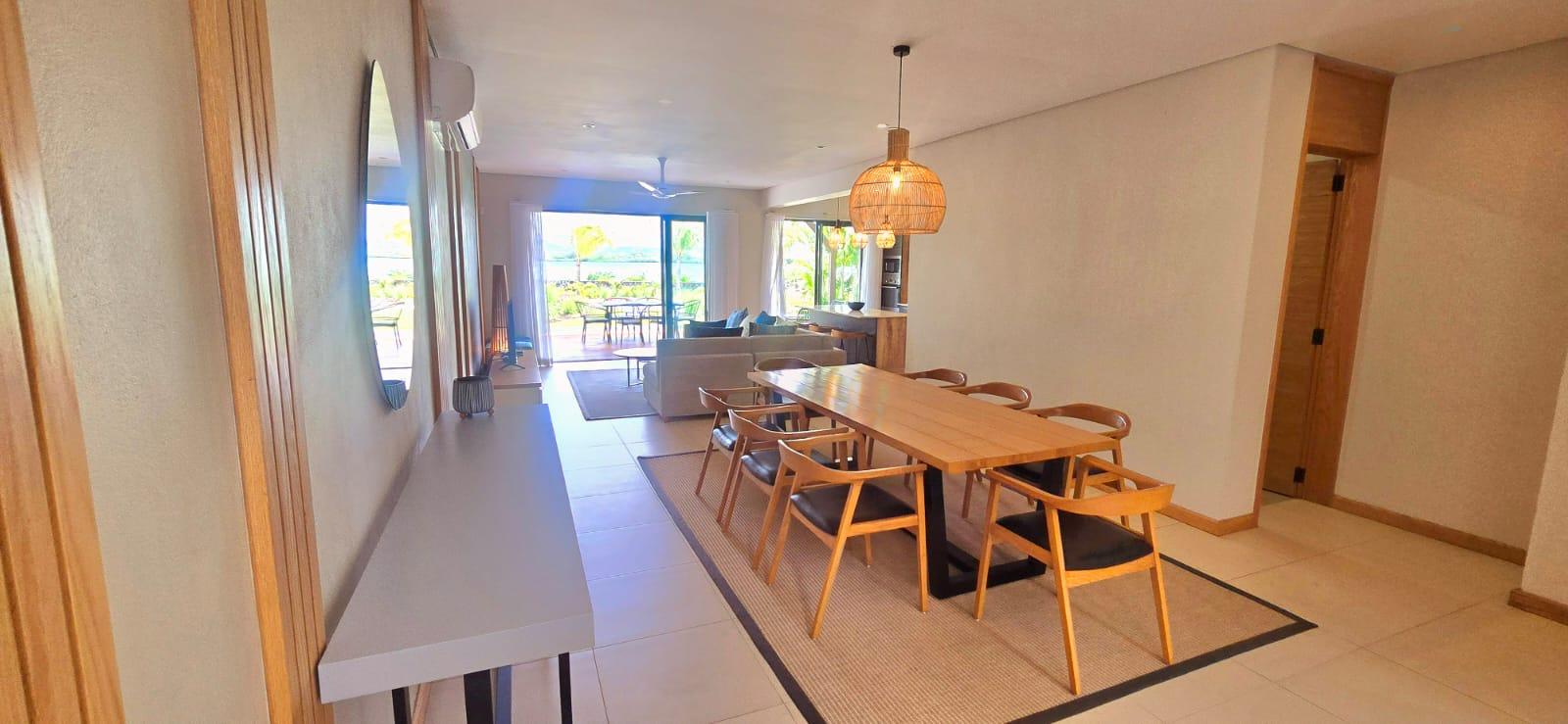 Cette somptueuse villa pieds dans l’eau meublée et équipée de 300 m² nichée au sein d’une résidence intimiste et sécurisée, offre un cadre de vie idyllique, avec une vue panoramique imprenable sur le lagon turquoise. Alliant élégance, confort et prestations haut de gamme, elle séduit par ses vastes espaces de vie lumineux et son atmosphère paisible, idéale pour les amateurs de mer et de sérénité. Idéalement située entre Poste Lafayette et Bras D’Eau, à proximité du centre commercial Flacq Coeur de Ville et de toutes les commodités, cette propriété représente une opportunité rare sur le littoral nord-est de l’île.