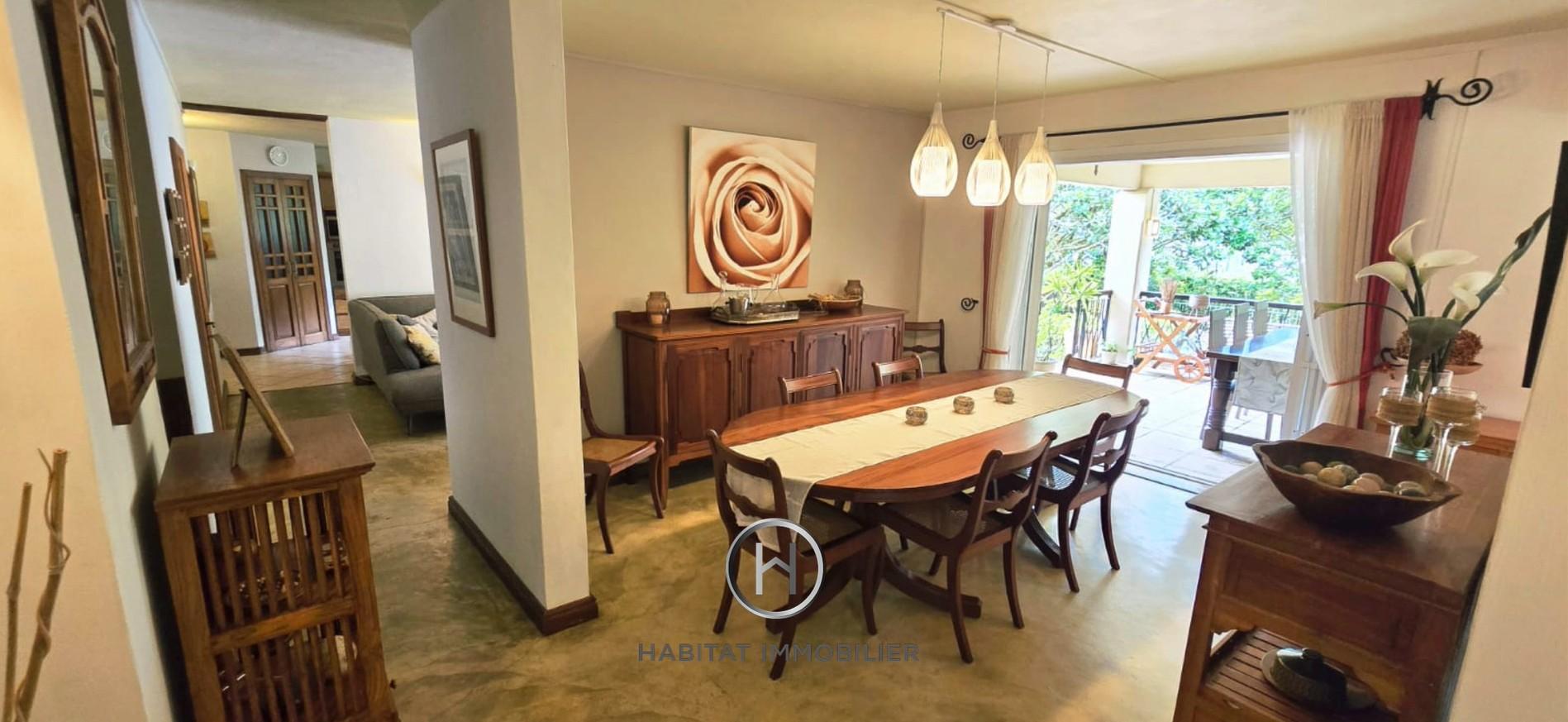 Située dans un quartier prisé de Floréal, cette charmante maison de 259 m² est érigée sur un terrain arboré en toute propriété de 637 m² (167 toises / 15 perches). Elle offre un cadre de vie verdoyant et paisible, idéal pour une famille en quête de confort et de tranquillité. Pensée pour une vie familiale harmonieuse, la maison séduit par ses volumes généreux, ses espaces bien agencés et son atmosphère chaleureuse. Non meublée, elle offre aux futurs propriétaires la liberté de personnaliser les espaces selon leurs goûts et de créer un intérieur à leur image. Son emplacement stratégique renforce encore son attrait : à seulement quelques minutes du centre commercial So’Flo, de la clinique C-Care, des écoles réputées, commerces et services essentiels. Profitez d’un cadre de vie raffiné, idéalement situé, où confort et accessibilité se conjuguent…une visite s’impose !